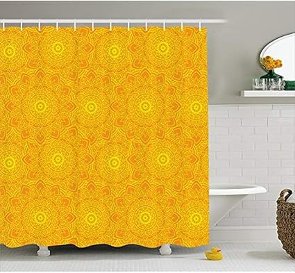 Yeuss Gelber Mandala Duschvorhang Lebendige Farbige Abstrakte Lotus Blumen Native Kunstwerk Warme Sonne Inspiriert Stoff Badezimmer Dekor Set Mit Haken Gelb Orange 72 X80 Amazon De Kuche Haushalt