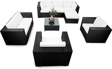 Amazon De Xxxl Lounge Mobel Set Xxl Erweiterbar Polyrattan Lounge Eck Sofa Set Schwarz Garnitur Lounge Eck Set Gartenmobel Gartenlounge Set Inkl Lounge Sofa Ecke Sessel Hocker Tisch Kissen