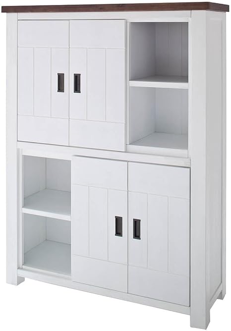 Mobel Ideal Highboard Havana Im Landhausstil Weiss Braun Schrank Aus Massivholz Holz Akazie Massiv Amazon De Kuche Haushalt