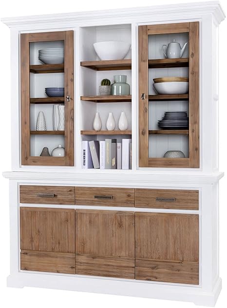 Mobel Ideal Buffet Weiss Braun Im Landhausstil Aus Massivholz Holz Akazie Massiv Breite 168 Cm Tiefe 47 Cm Hohe 211 Cm Amazon De Kuche Haushalt