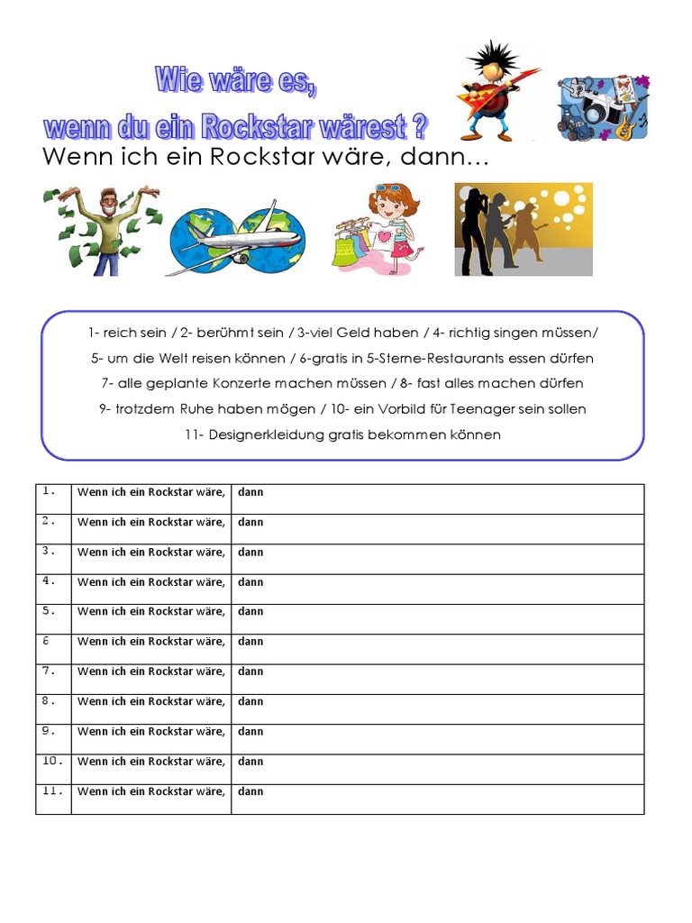 Wenn Ich Ein Rockstar Ware Deutsch Daf Arbeitsblatter