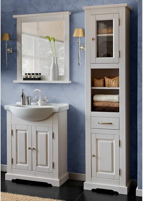 Lomadox Landhaus Badmobel Set Andersen Pine Weiss Im Landhausstil 80 Cm Waschtischunterschrank Inkl Keramik Waschbecken Hochschrank Mit 2 Turen Und Schubkasten Und Spiegel Amazon De Kuche Haushalt