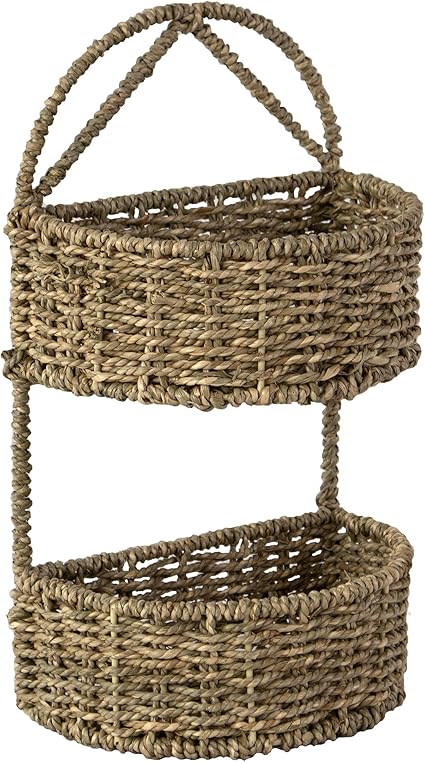 Madeterra 2 Stockiger Kreisformiger Korb Aus Korbgeflecht Zum Aufh Ngen Fur Tur Eingang Bad Kuche Heimdekor Handgewebter Rustikaler L Ndlicher An Der Wand Befestigter Aufbewahrungskorb Amazon De Baumarkt