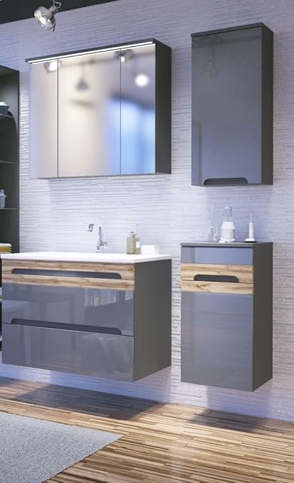 Naka24 Badmobel Set Galaxy V 80 Mit Waschbecken Keramik Led Komplettes Badmobel Set Grau Hochglanz Eiche Matt Amazon De Kuche Haushalt