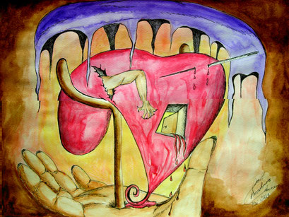 Gemälde der besonderen Art Kunst mit Kehr-Maschine Verrückt wie Malerin Alena 30 ihren Liebeskummer verarbeitet. Es gab und wir immer Menschen geben die Liebeskummer. Diese neurophysiologischen Effekte die der Liebeskummer hat sind aber umkehrbar.