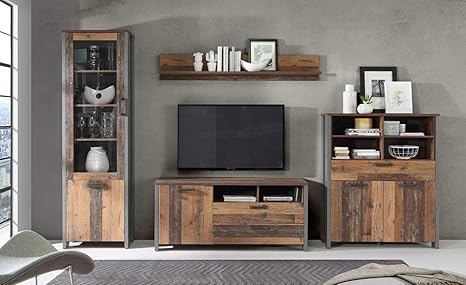 Forte Wohnwandkombination 4 Teilig In Trendigem Vintage Industrial Look Bestehend Aus Einer Vitrine Einem Tv Lowboard Einem Highboard Sowie Einem Wandregal Amazon De Kuche Haushalt