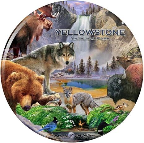 Amazon Com Yellowstone National Park Wyoming Montana Idaho Animals Wolf Bear Fox Bison Kitchen Refrigerator Locker Button Magnet Kitchen Dining