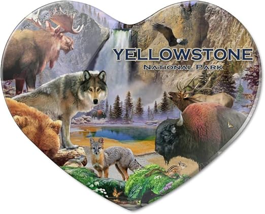 Amazon De Yellowstone National Park Wyoming Montana Idaho Tiere Wolf Bar Fuchs Bison Herz Acryl Kuhlschrankmagnet