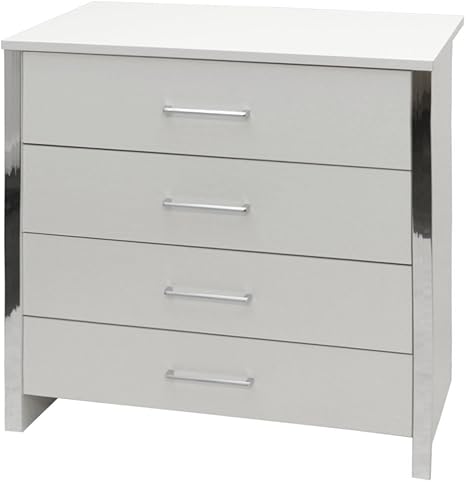 Aoe Performance Kommode Mit 4 Schubladen In Esche Weiss Effekt Mit Chromrand Und Silber Griffe Gosport Modernes Design Home Mobel Amazon De Kuche Haushalt