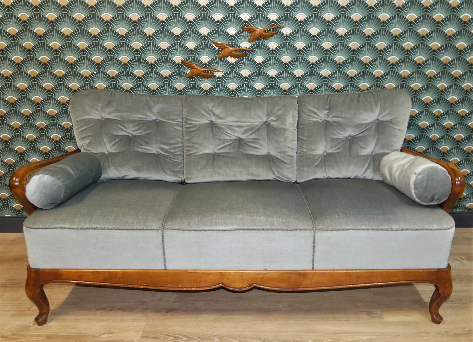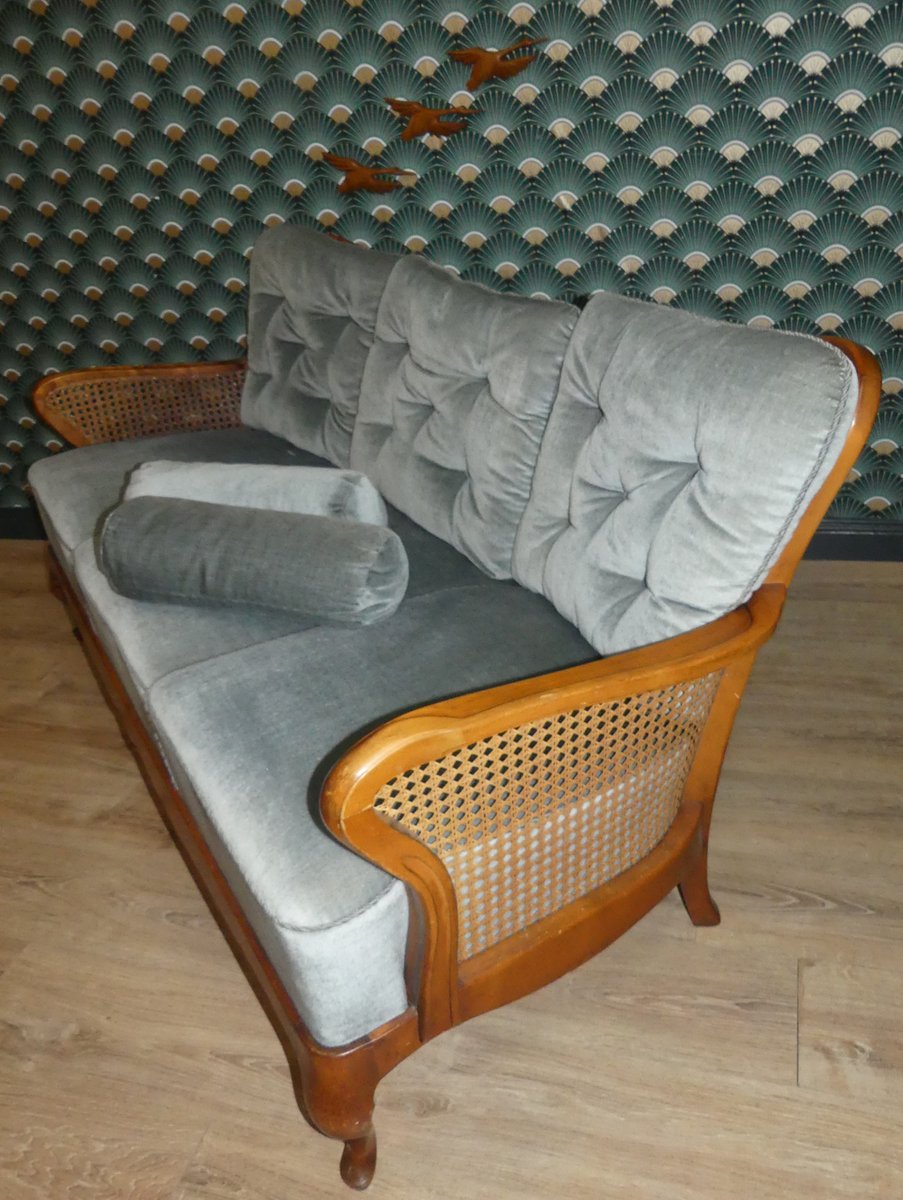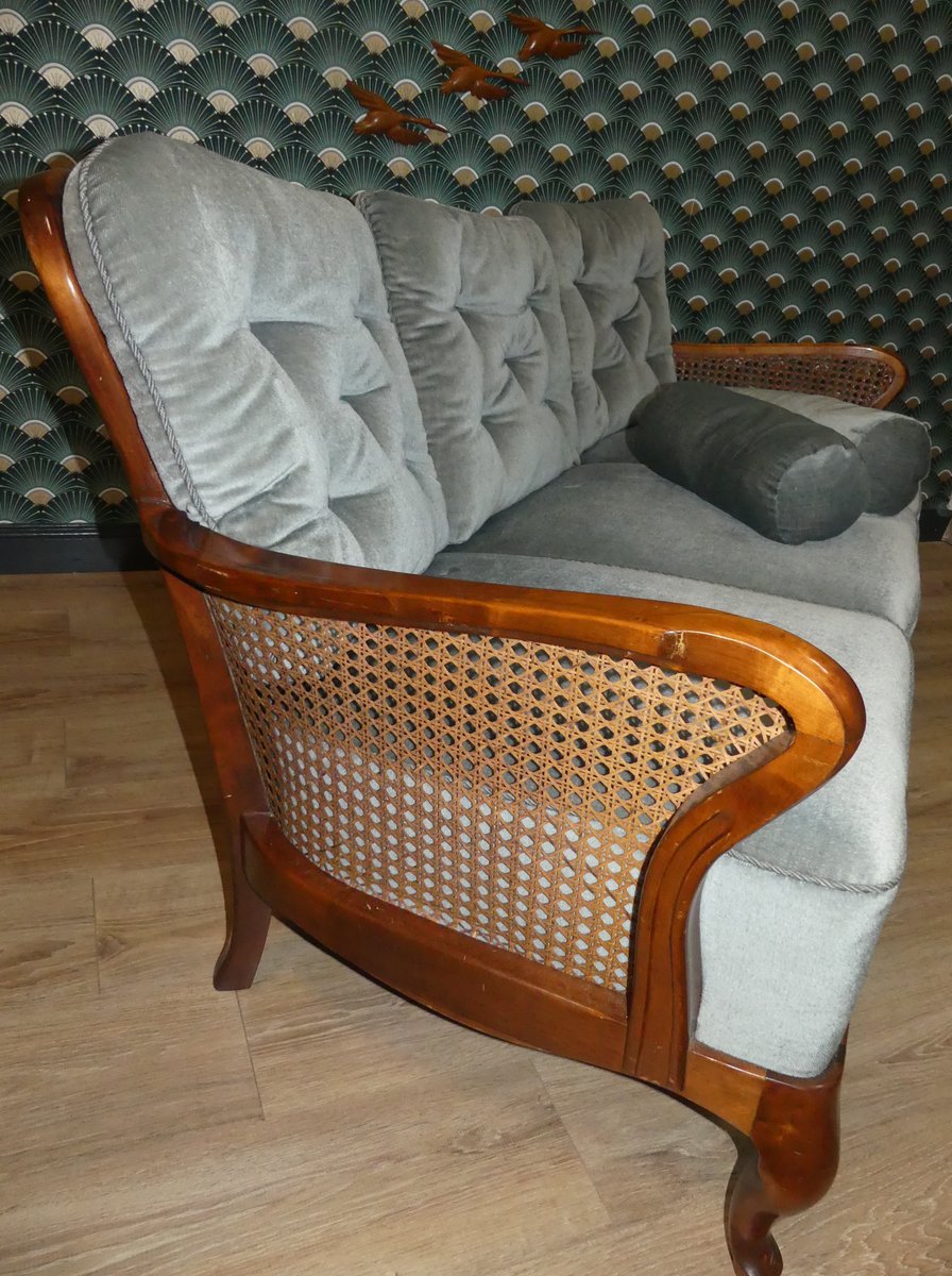 Viennese Chippendale Style Dove Blue Velvet And Wicker Sofa 1960s For Sale At Pamono