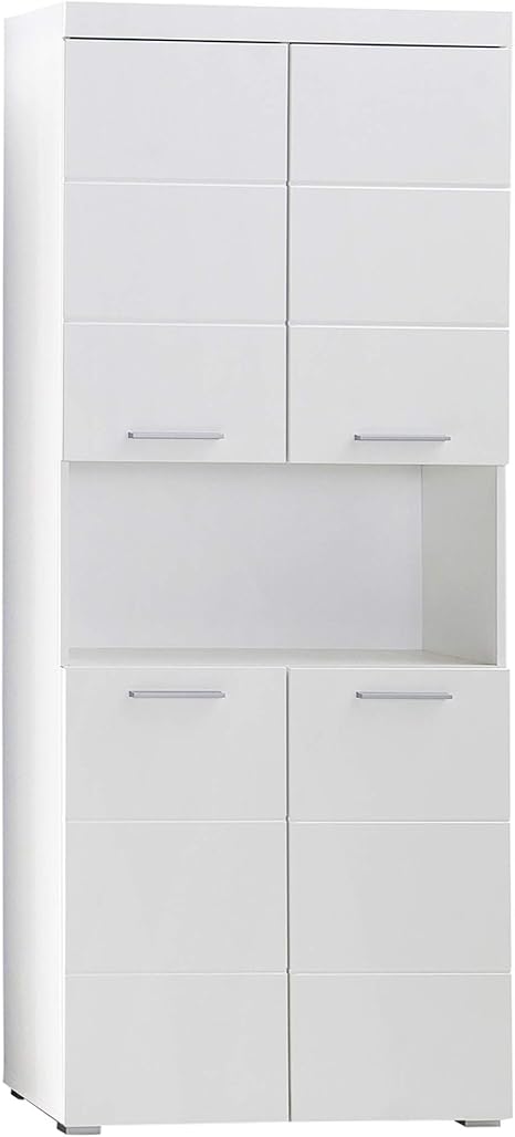 4 Einlegeböden 8 geschlossene Fächer. Mokebo Bad-Hochschrank Der Kapitän moderner Badschrank oder Midischrank Germany klimaneutraler Versand MDF in Hochglanz Weiß -20 Bad-Hochschrank. Hochglanz Vitrinenschrank in Weiß Glas Yulis 3-türig.