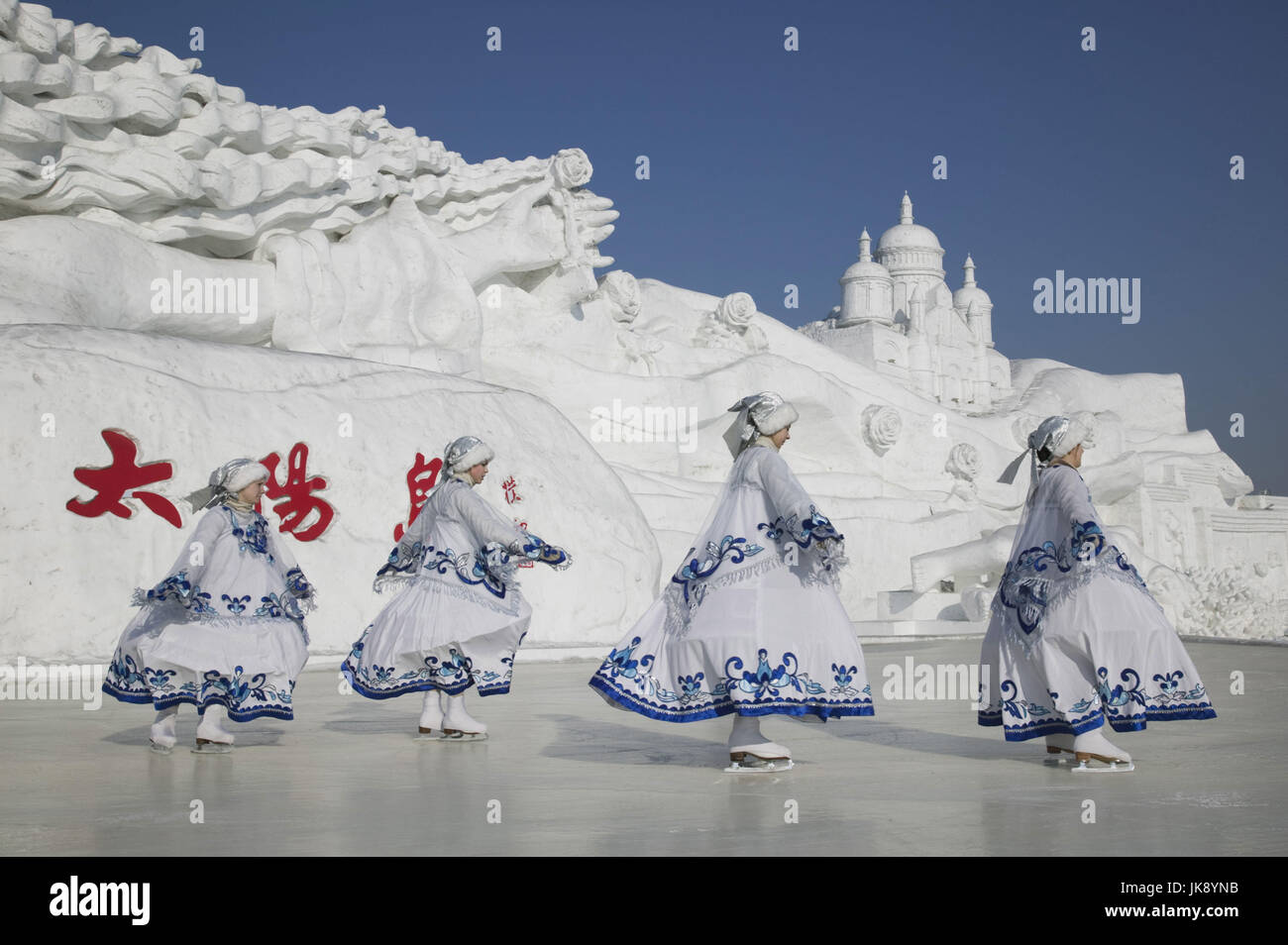 China Heilongjiang Harbin Schnee Und Eisskulpturen Festival Kunstwerke Schneeskulpturen Eislaufer Stock Photo Alamy