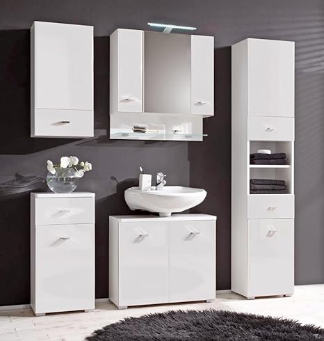 Amazon De Komplett Badezimmer Set Hochglanz Weiss Badezimmermobel Waschplatz Spiegelschrank